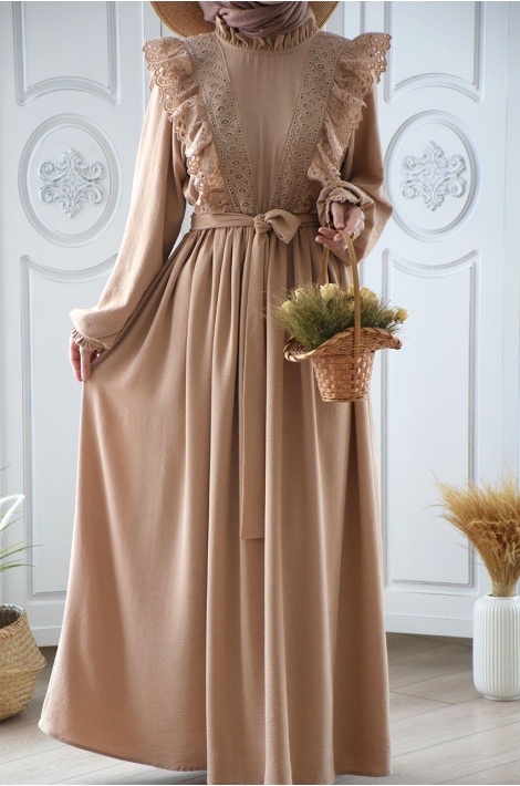 Bej Renk Kuğu Elbise