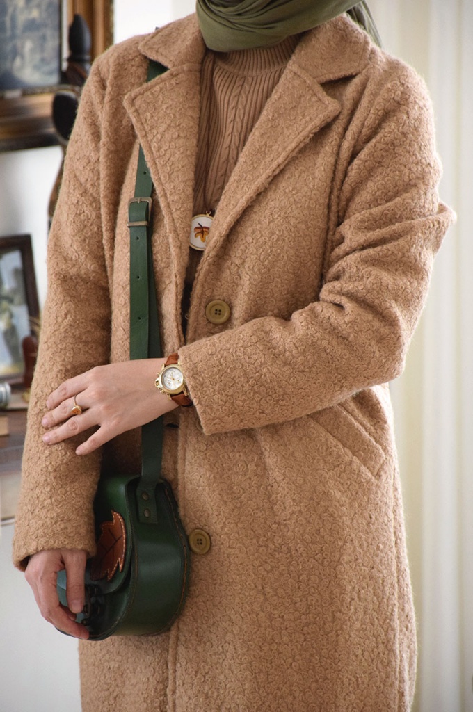 Balıksırtı Desenli Yumoş Kaban Bej Rengi