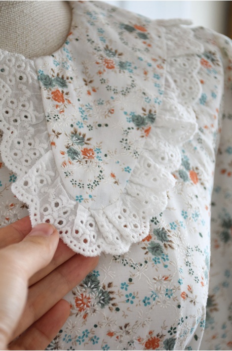 Çiçekli Bebe Yaka Yeşil-Turuncu Çiçekli Elbise
