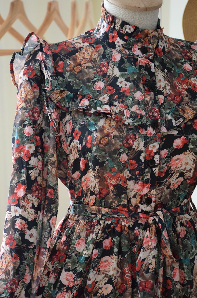Çiçekli Siyah Renk Saten Elbise