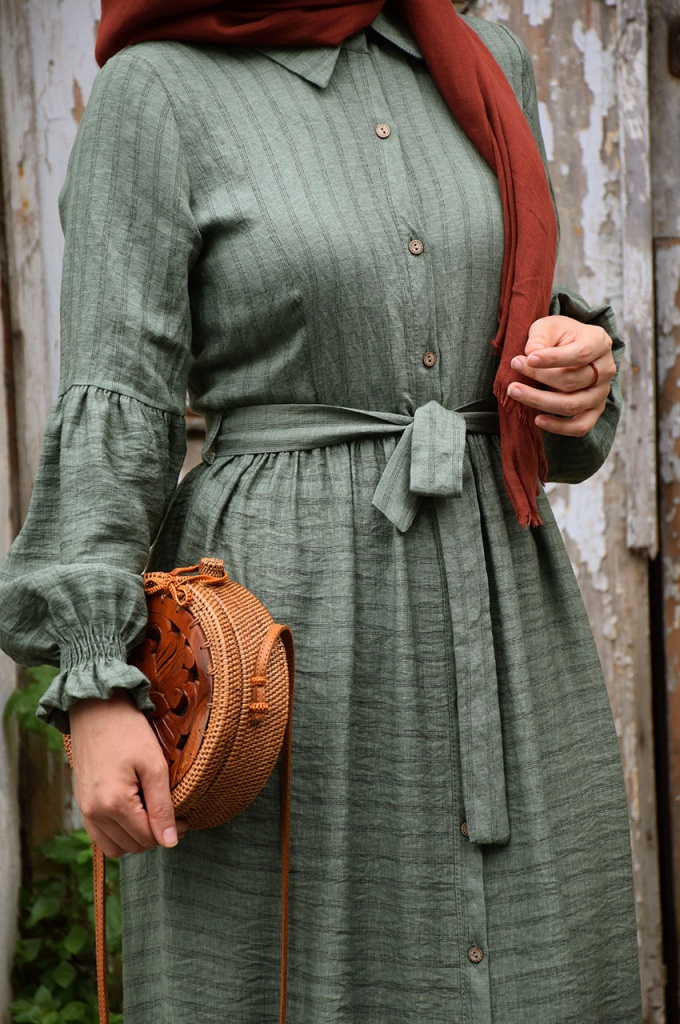 Çizgili Yeşil Renk Elbise