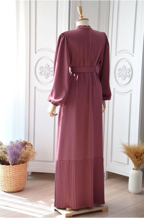 Etek Ucu Piliseli İpek Krep Elbise GülKurusu Rengi