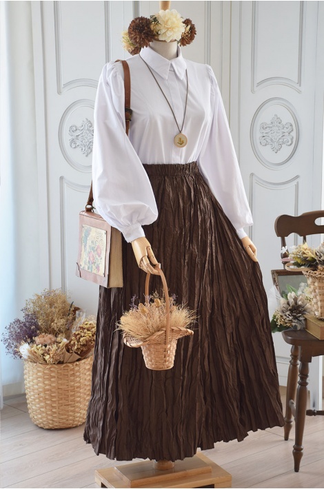 Kırışık Model Kahverengi Etek