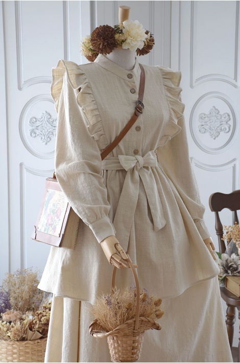 Naturel Volanlı Keten Bluz Bej Rengi
