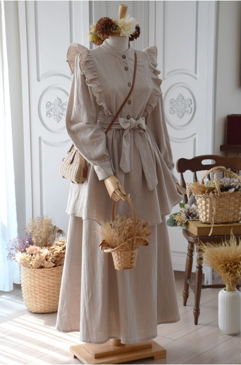 Naturel Volanlı Keten Bluz Ham Keten Rengi