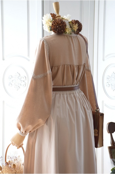 Pamuklu Kemerli Etek Açık Bej Rengi