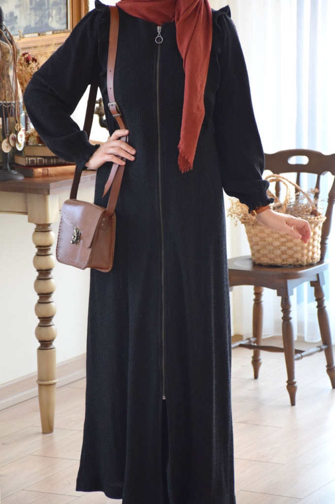 Fermuarlı Mevsimlik Ferace Koyu Haki