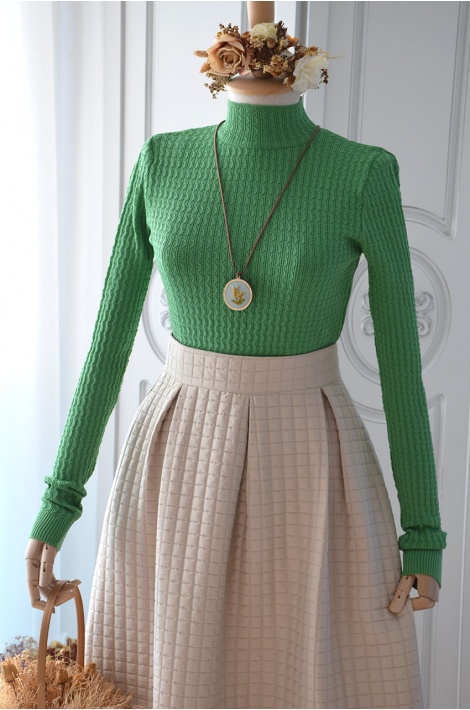 Su Dalgası Desenli Triko Bady Yeşil Renk