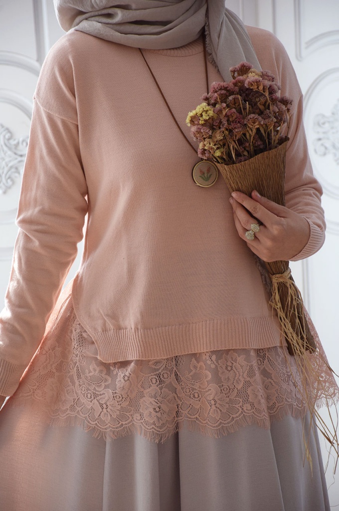 Su Dalgası Desenli Triko Bady Pembe Renk